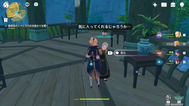 軽策荘の東にあるワープポイントの近くにいる若心に話しかけると任務が進行します。