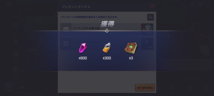 チュートリアル終了後はプレゼント(報酬)をすべて受け取りましょう。