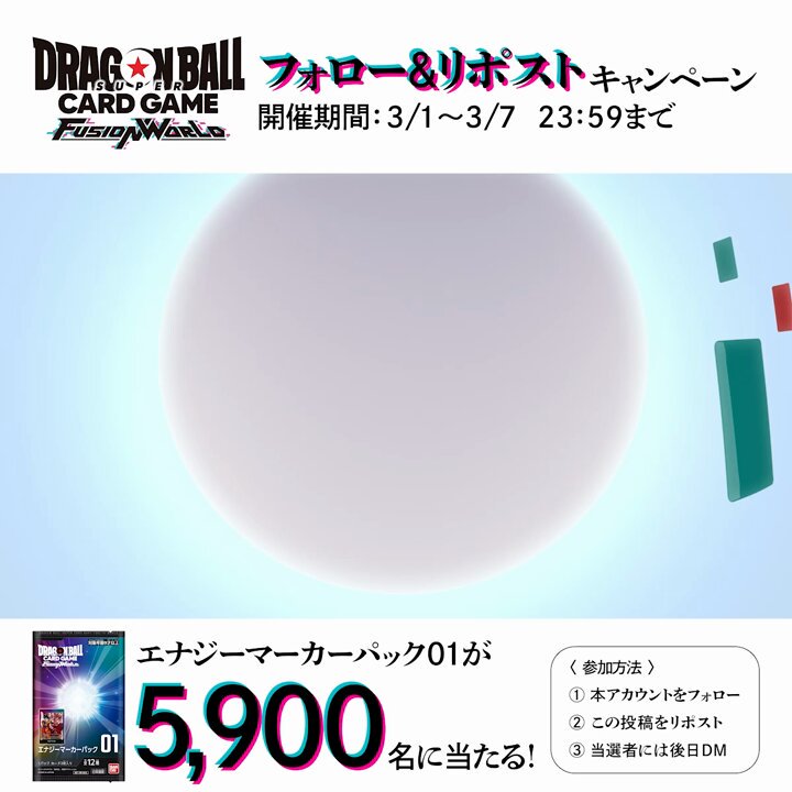 ドラゴンボールスーパーカードゲーム フュージョンワールドの公式Xアカウントで抽選で5900名様に「エナジーマーカーパック01」が当たるキャンペーンを開催していました。